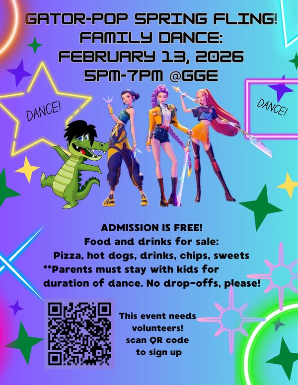 Get ready to dance, celebrate, and have fun at our annual Gator-Pop Spring Fling. This high energy school event is a favorite for students and families and a great way to build community while supporting our school.