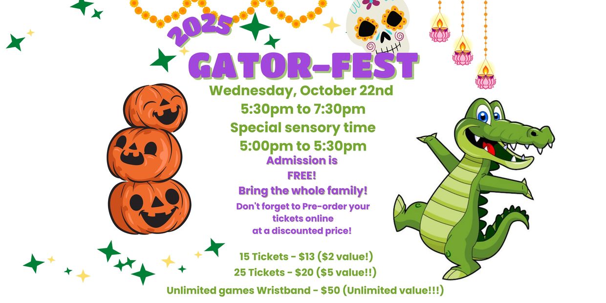 Get ready, Gators! Our annual fall festival, Gator-Fest, is back and bigger than ever. Mark your calendars and bring the whole family for an evening of fun, food, and festive community spirit. Gator-Fest is back and open to the entire Gregory Gardens community- Bring your friends, neighbors, and loved ones for a night of fun, food, and fall festivities!