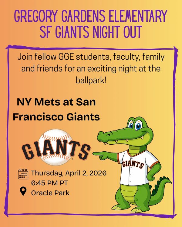 Join fellow GGE students, families, teachers, and friends for a fun community night at the ballpark. This special group event is a great way to connect with other Gator families while cheering on the Giants together.